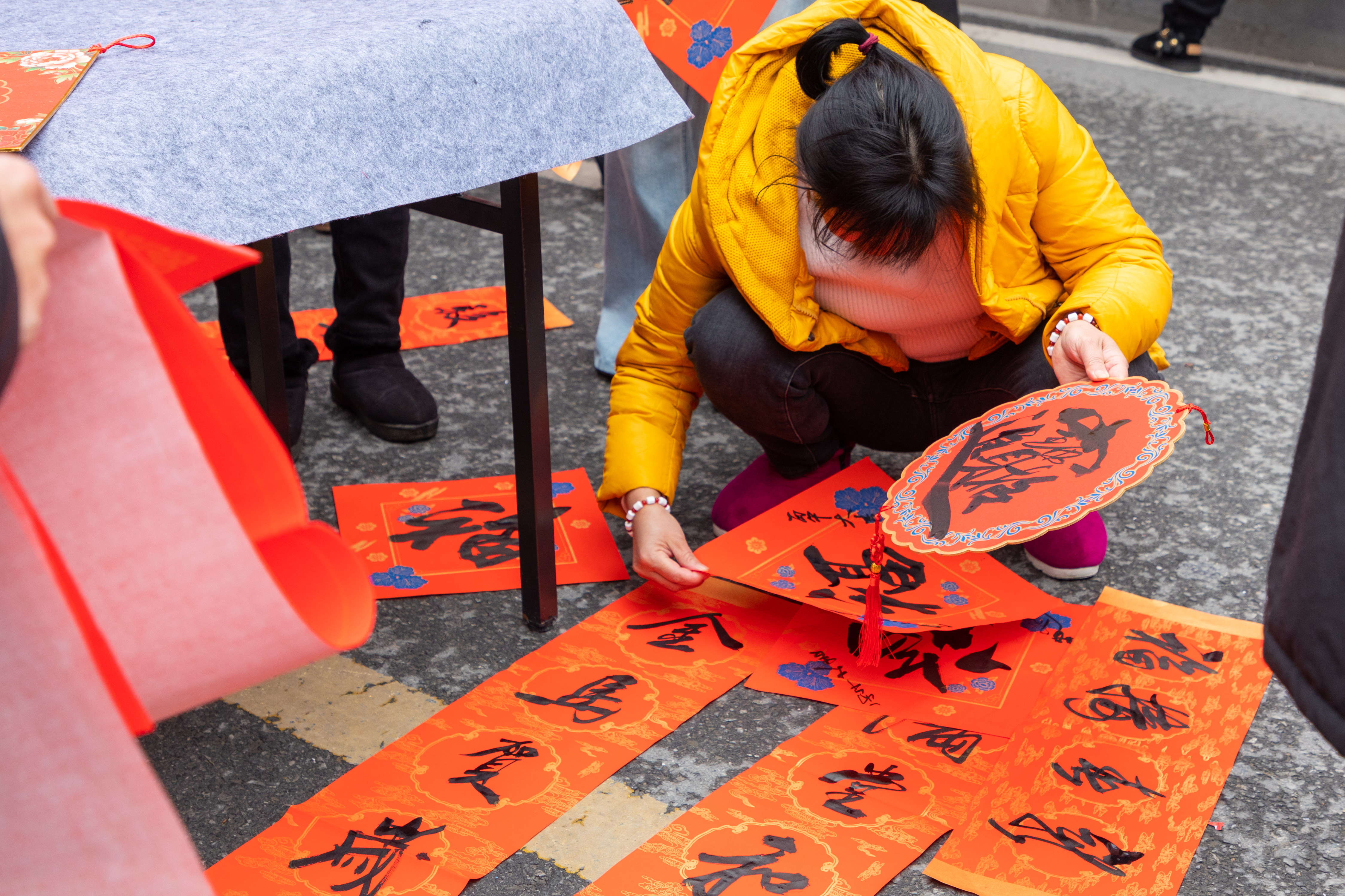 活动现场,十余名书法家展卷挥毫,笔走春风。“门迎晓日财源广,户纳春风吉庆多”等传统吉联与“乡村振兴千家富,文化传承万象新”等时代主题联句交相辉映,让群众在红纸墨香中感受到浓浓的年味与时代的脉搏。我馆文化志愿者们穿梭于人群中,悉心维护秩序,主动为老人、孩子讲解联句寓意,细心晾晒每一份墨宝,于细微处彰显了公共文化服务的温度。