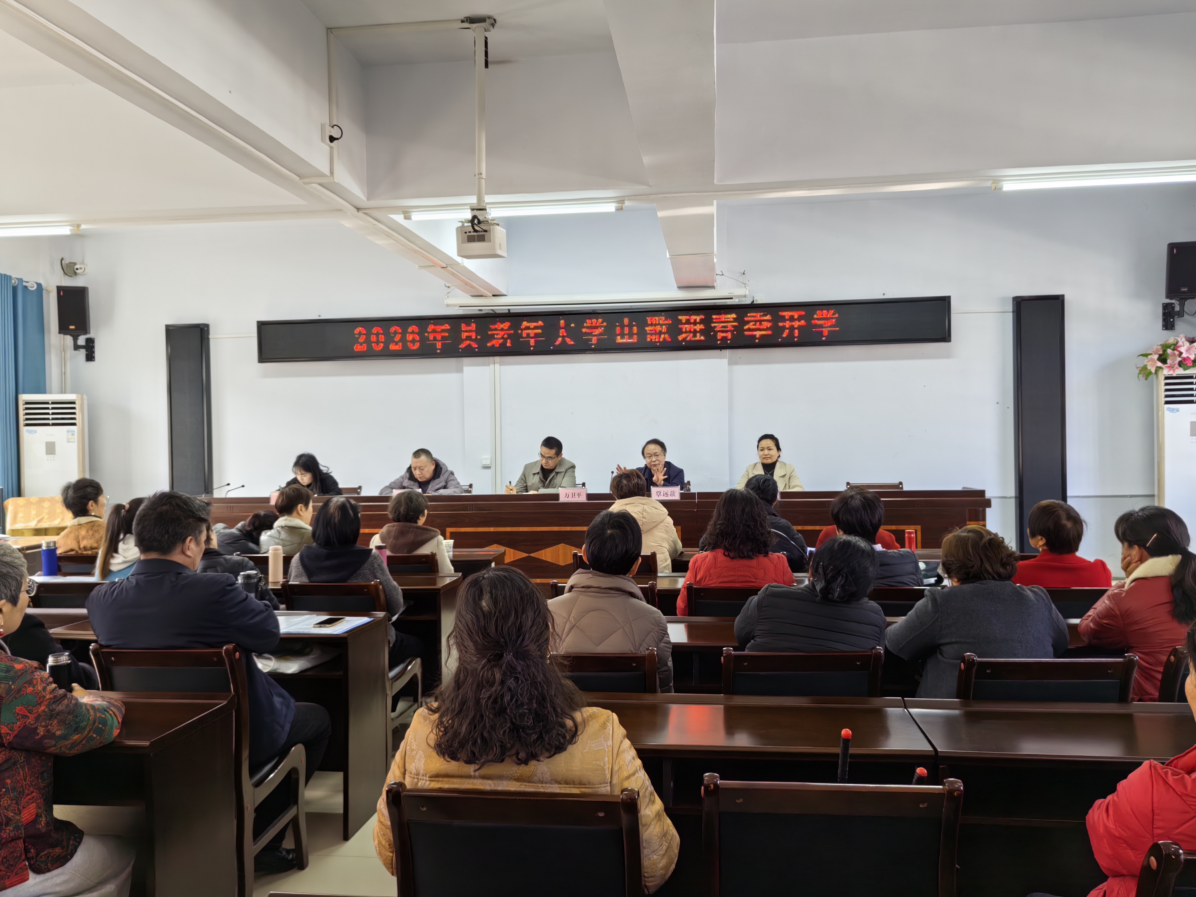 2026年3月13日上午,五峰老年大学山歌班28名学员在该校二楼培训教室参加春季学期开班仪式,其中老学员25名,新学员3名。