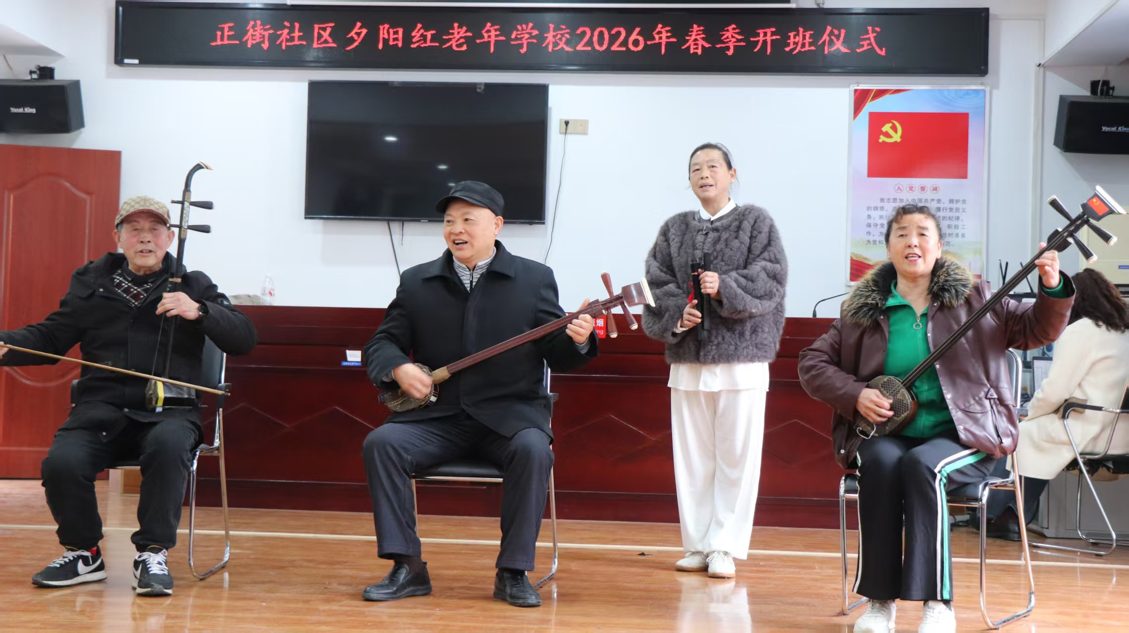 3月26日,五峰镇正街社区夕阳红老年学校举行2026年春季学期开班仪式,正式开启新学期的非遗传承培训工作。